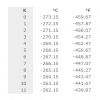 Look up a temperature from 0 to 1000 Kelvin (K) to convert it to degrees Celsius (°C) or Fahrenheit (°F).